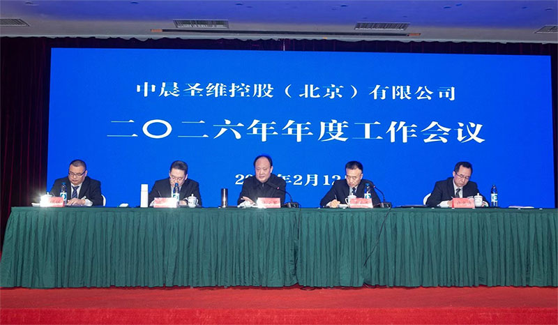 2026年2月12日中晨圣维控股(北京)有限公司二〇二六年年度工作会议在青州贝隆花园大酒店隆重举行。会议由集团总裁孟凡龙同志主持,集团董事长张文军同志做了年度工作报告。会议回顾总结了过去一年的工作成果,明确了集团未来的产业发展方向与战略目标,并对新一年的重点工作进行了系统部署。